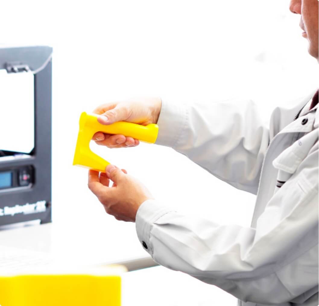 そこで、搬送用グリップの角度や形状に着目しました。求められるのは、ベッドを搬送する際に、後ろから押すスタッフが力を入れやすく、先頭のスタッフがベッド側面から握りやすいデザインです。この課題に応えるため、実物大モックアップの製作や、3Dプリンターによるグリップ部分の試作などを繰り返し行い、握りやすさと搬送性の評価を実施しました。そして人間工学の観点も取り入れ、中手指節関節ライン※に合わせてボードのグリップに角度をつけることで、握りやすく、力を入れやすいグリップの開発に成功しました。