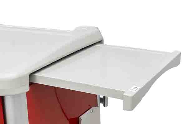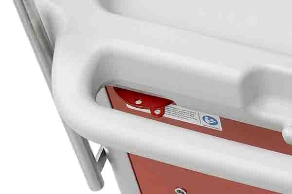 When the disposable key is inserted into the locking bar on the front of the unit, all drawers can be secured.