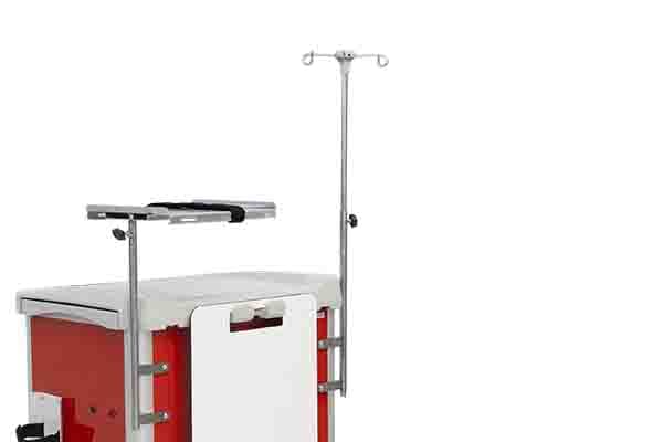 The body comes with a height-adjustable IV pole.
