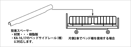 ※ このスペーサーは補助的なものですので、確実に柵と柵の間のすき間をうめるには、サイドレールスペーサーKA-34をお使い下さい。