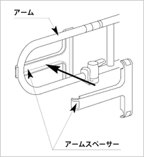 1. 介助バーのアームをアームスペーサーで挟み込んで下さい