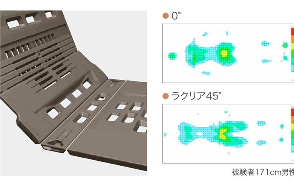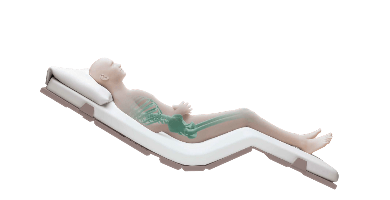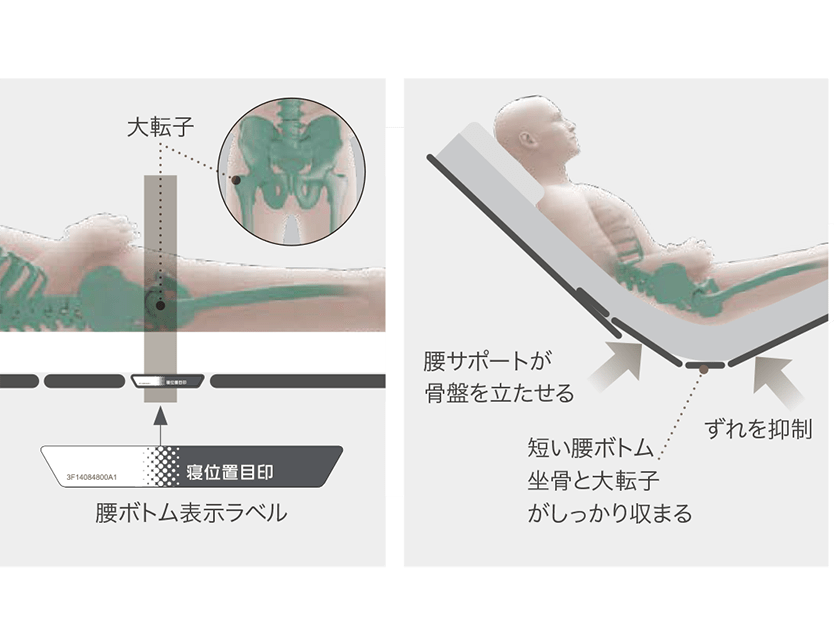 背あげと同時にスライドして伸びながら曲がるキューマラインボトムがさらに進化。ずれを軽減しながら身体に合った起きあがりで骨盤の立った動きやすい姿勢に移行できます。