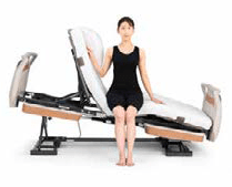 ラクリアモーションで起きあがると、足先が下がっているので、足が降ろしやすくなります。ラクリア3モーションでは、離床しやすいように操作するときのベッドの高さによってベッドの傾斜角度を自動的に調節。起きあがったときの腰ボトムの高さを調節します。
