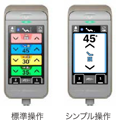 付属の手元スイッチと同じようにベッドを操作できるようになります。操作画面はボタンの大きさなどが異なる3種類から選べます。