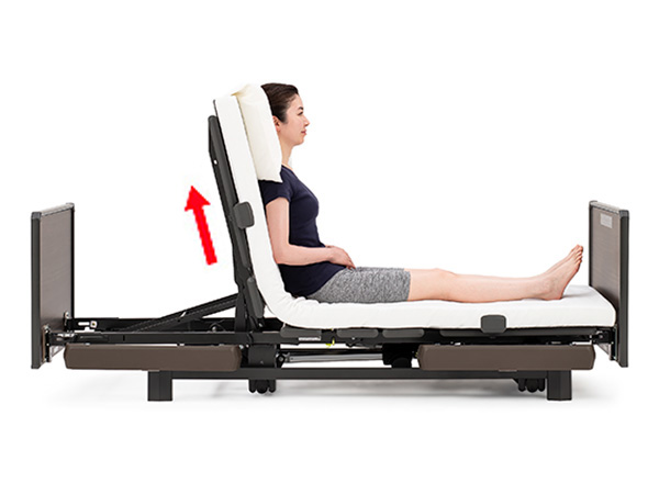 伸びあがるように起こして、圧迫感やズレを軽減する「ストレッチ背あげ」