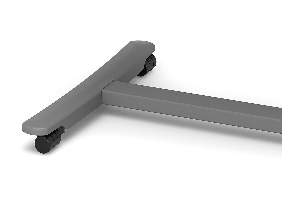 脚部には移動用のキャスターを設けています。低床ベッドでも使用しやすいように、脚部の高さを低くした設計です。