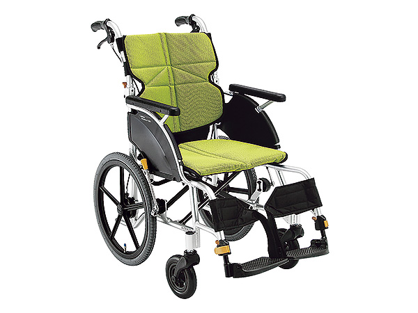 軽量のアルミ製フレームで、バックサポートの折りたたみと背張り調節ができる車椅子です。