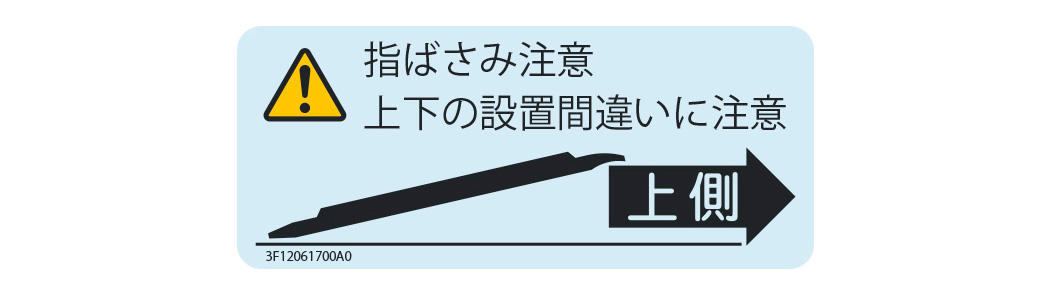 使用する場所でスロープの向きを直すことがないように、取っ手を持ったときに目につきやす位置にスロープの設置方向を示すマークが付いてきます。