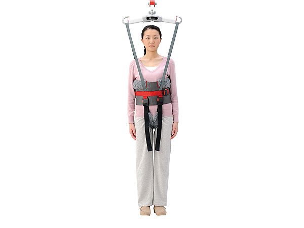 ベストのように着脱できる形状です。リフトを利用する際に立位や歩行をサポートします。