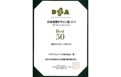 一般社団法人日本空間デザイン協会が2018年11月に主催した「DSA日本空間デザイン賞」は、1966年に創立された世界最大規模の空間環境系のデザイン賞で、優れた作品を顕彰する目的で毎年開催されています。このたび当社ショールームが、応募総数771作品の中からエキシビション、プロモーション空間部門で評価され、「Best50」に選出されました。