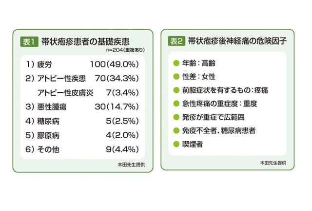 「免疫力が低下する病気や、ステロイド剤などの免疫抑制剤を使っている患者さんの発症が多い傾向です。あと、手術や交通事故など、大きなストレスがかかった後、2週間以内に発症することが多いです。ですから、特に基礎疾患がない患者さんには、2週間以内になにかありましたか?と聞くようにしています」と本田先生。