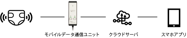 紙おむつに取り付けたセンサーが排便を検知すると、スタッフのスマートフォンなどに通知。