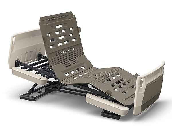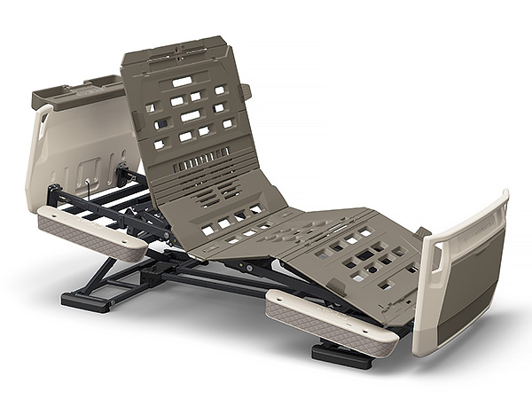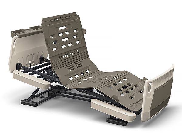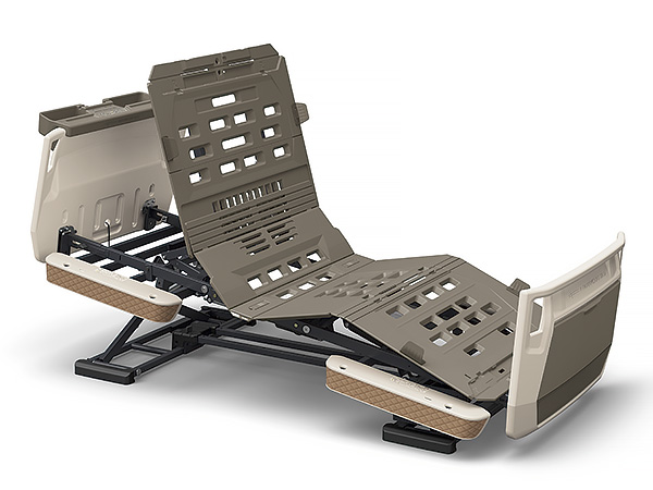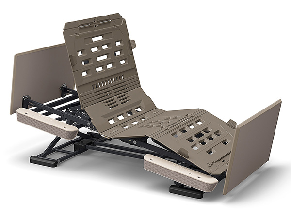 伝い歩きなどに便利なグリップを設けています。グリップはベッドの内側からもつかまれる形状にしてあり、ご本人様が寝位置を調整するときにも利用できます。収納カバーは前機種よりも幅を17cm、高さを8cm拡大、標準サイズ(M)のスライディングボードが治ります。また、収納カバーの下部は収納物の有無がわかる半透明の材質を使用しています。
