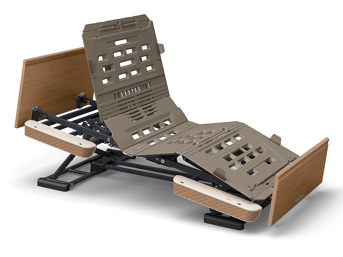 背・膝のあげさげとベッドの傾斜を組み合わせた「ラクリアモーション」と背ボトムの角度調節、膝ボトムの角度調節機能、ベッドの高さ調節が利用できます。