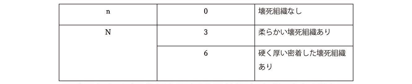 壊死組織があるかないかで判定。壊死組織がなければ「n」。あれば「N」とします。ただし、壊死組織の種類は問いません。