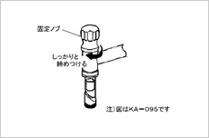 スイングアーム介助バーの差込部がベッドフレームのオプション取付穴に根元まで入っていることを確認し、固定ノブを回してしっかりと締めつけてください。スイングアーム介助バーが抜けると、転倒してけがをするおそれがあります。使用前にぐらつきがないかよくご確認ください。