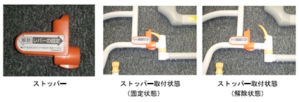 弊社では、認知症など操作について十分にご理解いただけない方がやむを得ず1人でご使用になられる場合を含め、意図しない操作を予防する手段の1つとして、ロックレバーの操作を制限するための『ストッパー』をご用意致しました。(有償)。