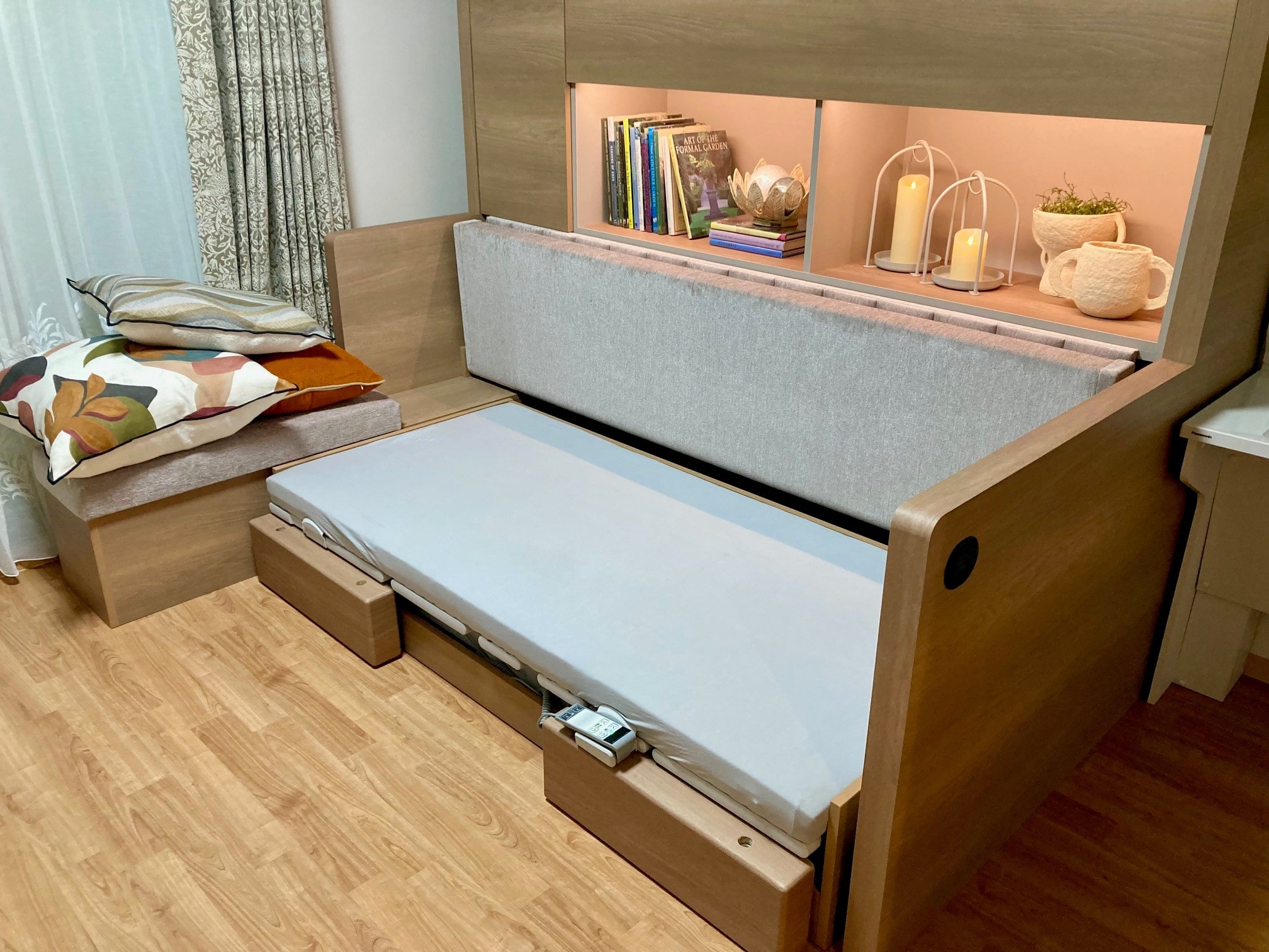 収納可能な介護ベッド。