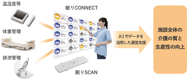将来的にはクラウド型見守り支援システム「眠りCONNECT」に本体重記録機能を連携させ、睡眠と体重のほかに排泄や温湿度記録を一元管理できるシステムを構築し、介護施設における介護DX推進に貢献してまいります。