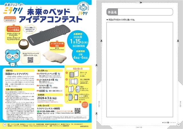 2025年10月より、東京都・大阪府・京都府の小学校4~ 6年生を主な対象として2万部を無料で提供いたします。教育現場での活用を通じて、子どもたちが自身の睡眠習慣と生活リズムを見直すきっかけを提供し、健やかな成長を支援してまいります。また、関連企画として「未来のベッド」絵画コンテストを実施し、2026年3月に結果を発表する予定です。