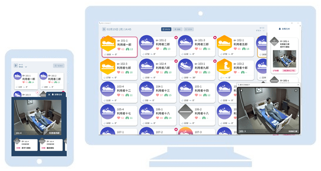 このように、「眠りSCAN」で利用者の状態を見える化をすることは、利用者の安心・安全につながります。また、介護者にとっても、見える化により頻繁にベッドサイドを訪れる必要がなくなるため、業務の負担軽減や効率的で質の高いケアの提供をサポートします
