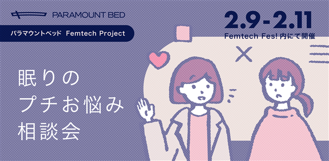 当社では日々の健康状態を表す睡眠データをもとに生涯を通じて女性の健康をサポートするプロジェクトを推進しています。「Femtech Fes!」では、活動の主軸となる睡眠データをもとにした月経リズム、産後、更年期における実証調査の報告の他、「眠りのお悩みプチ相談会」や結城アンナさんとのトークセッション、(株)陽と人(令和5年度 経済産業省『フェムテック等サポートサービス実証事業費補助金』の採択事業で協業)と製作したソリューションプロダクトの展示を行います。ぜひ、お立ち寄りください。