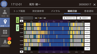 スマートベッドシステムの端末表示画面イメージ。