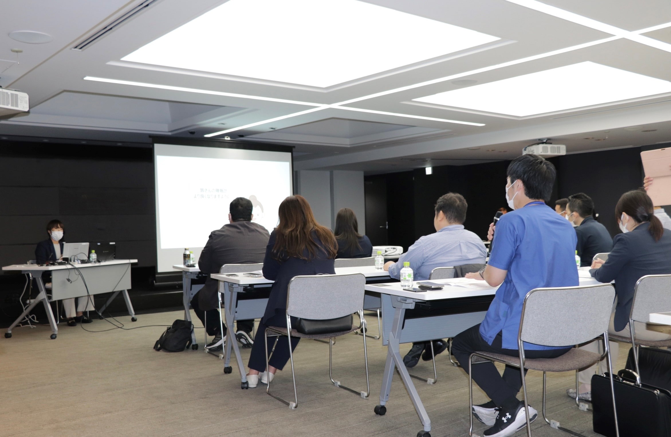 セミナーはパラマウントベッド本社とオンラインの両方で行われ、約20の病院・介護施設の関係者が参加しました。