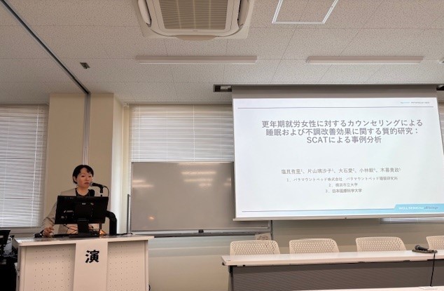 本研究では、改善効果が顕著であった1名のカウンセリング記録を対象に、SCAT(Steps for Coding and Theorization)を用いた質的分析を実施しました。その成果を、パラマウントベッド睡眠研究所の塩貝有里が2025年6月28日〜29日に広島大学で開催された「日本睡眠学会第49回定期学術集会」にて発表しました。