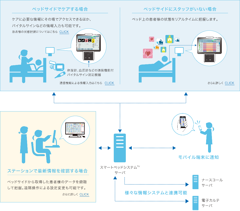 患者様の状態をリアルタイムで把握し、見守ることができます。