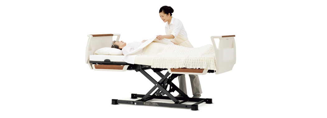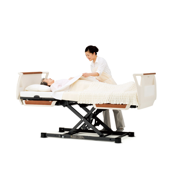 ゆかからボトムの上面までの高さが低い超低床タイプ、安全性に配慮した一旦停止機能により、安全な療養環境づくりをサポートします。