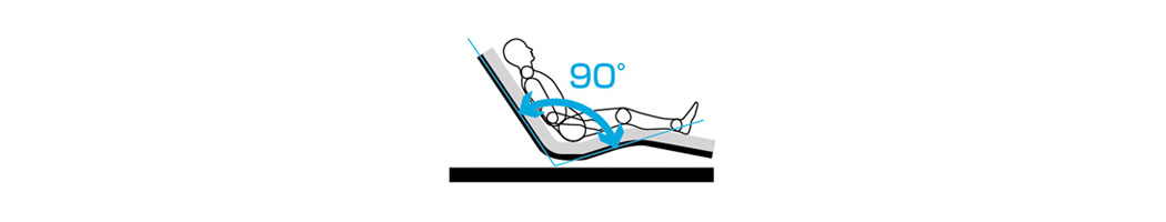 ベッドポジションを操作するときに、背ボトムと膝ボトム間が必要以上に狭くならないように配慮した設計で、90°以下にならないように動作します。