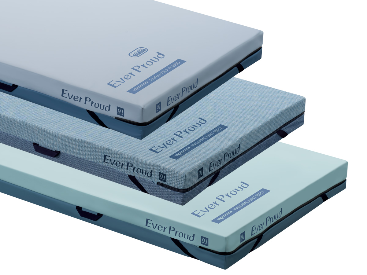 よりやわらかいエクストラソフト面では、静止型マットレスで最高レベルの体圧分散性を発揮します。最上層が非常にやわらかく、体圧分散性の高さに加えて身体へのあたりが心地よく優しく感じられるように配慮しています。