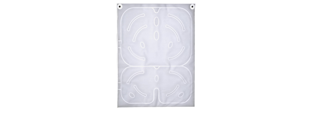 水溶液の流動性を活かして、上体を起こした場合にも臀部にかかる圧力を効果的に分散します。また、カッティング加工を施すとともに、膝からかかとに向かってなだらかな傾斜を設けることで、ふくらはぎへ圧力を分散します。
