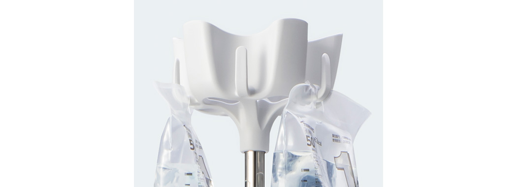 2,500mlまでの輸液バッグを取り付けられます。カーテンなどに引っかかりにくいように形状を工夫しているため、より安全に扱えます。