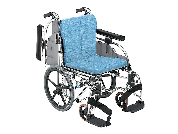 軽量のアルミ製フレームで、アームサポートの高さやバックサポートの背張り調節ができ、姿勢の安定を保つことにも配慮した車椅子です。