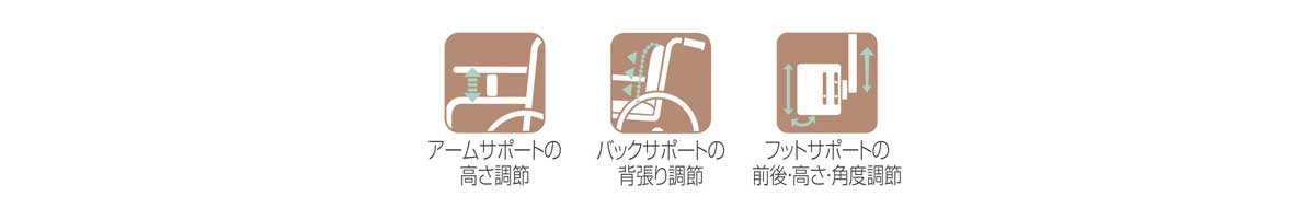 フットサポートの前後・高さ・角度調節
