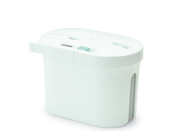 尿タンクの容量は約3リットル。一般的な成人の約1日分をためられるので、後始末は1日1回程度で済みます。また、ふたを開けなくても使用量の確認ができます。満タンになると本体のランプでお知らせします。尿タンクは取り外しができ、尿の処理や洗浄が簡単です。