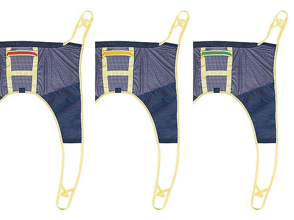 片足ずつ分けて支えます。座位で着脱でき、身体との接触面積がシート型に次いで大きいため吊りあげが安定しています。
