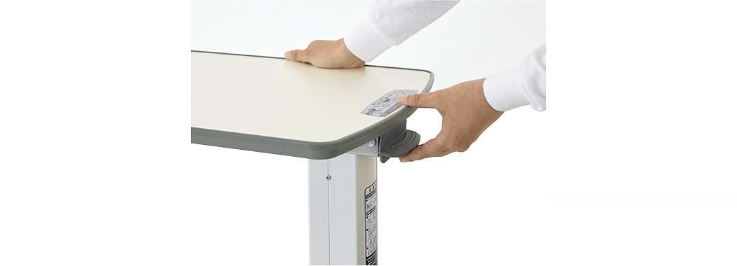 ガススプリング方式により、高さ調節レバーの操作で天板の高さを無段階で調節できます。